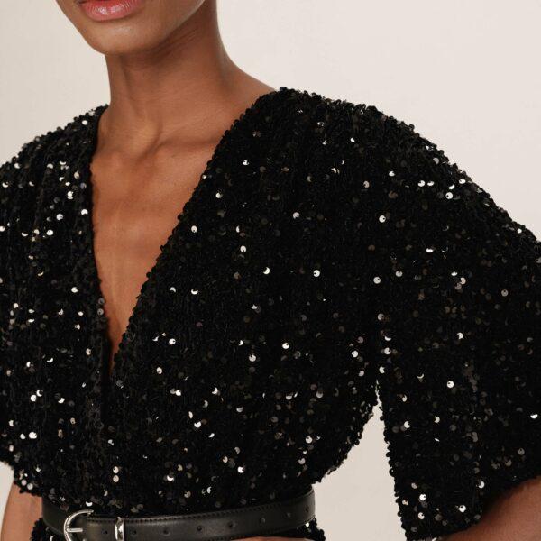 Blouse transparente lurex noir Tarzy – Grace & Mila