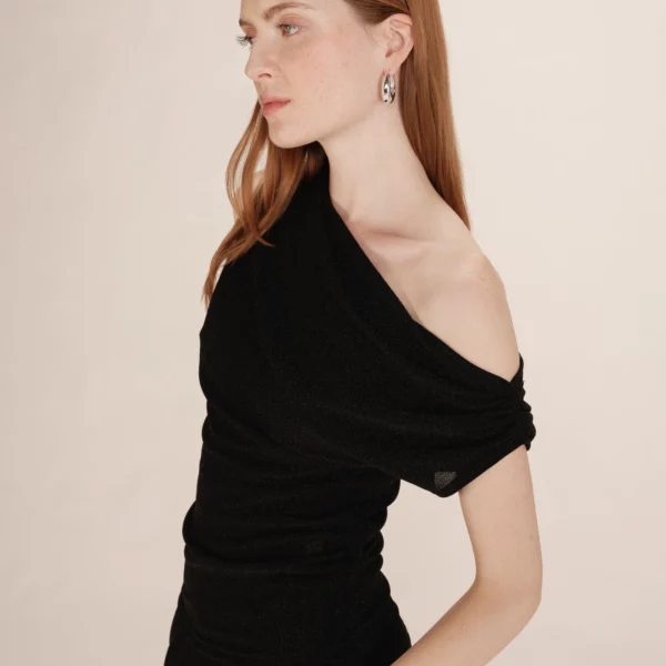 Top asymetrique en lurex noir Thao – Grace & Mila