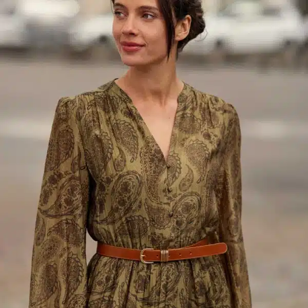 Robe longue abstraite chocolat Soisson – Grace & Mila