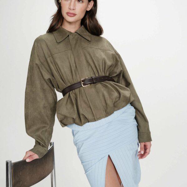 Veste bomber en suédine kaki Verve – Grace & Mila