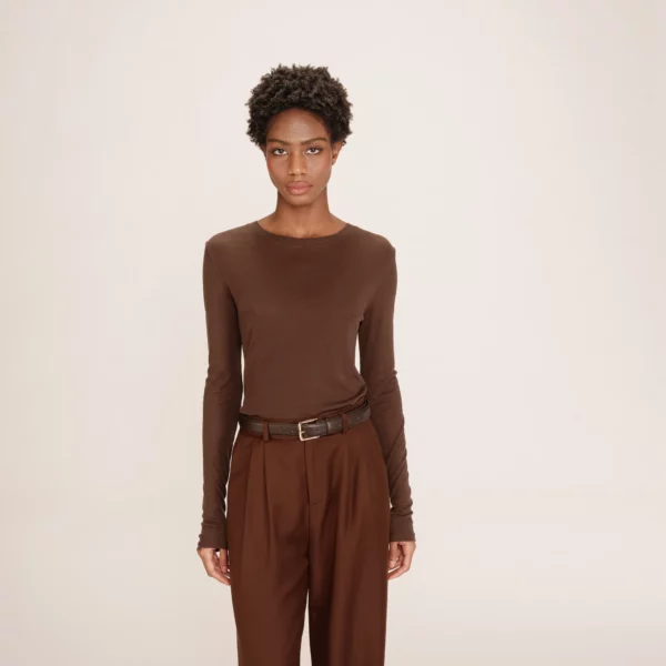 Top transparent en jersey chocolat Toni – Grace & Mila