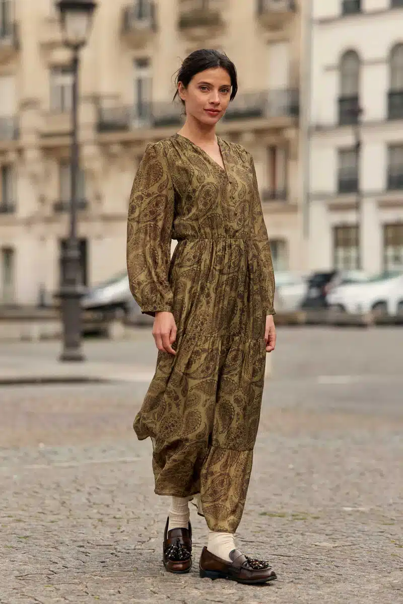 Robe longue Ryma pour femme – Coupe évasée et imprimé cachemire élégant