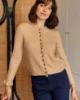 Gilet Meatrice blousant en maille douce, encolure ronde, volants fantaisie et boutonnage devant.