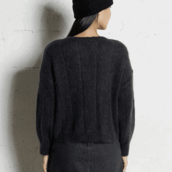 Gilet Meg en maille point fantaisie, encolure ronde, manches longues et boutonnage devant.