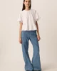 Le jean large Lise incarne une silhouette moderne et affirmée. Taille mi-haute, jambe ample et fluide, une rayure discrète apporte fantaisie et touche de féminité.