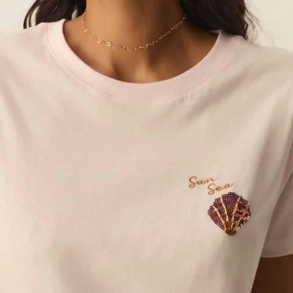Le t-shirt Fionna casse les codes de la marinière classique en adoptant une coupe oversize boxy très actuelle. Décliné en jersey de coton épais, l’imprimé coeur effet tag apporte une touche urbaine à ce basique revisité.