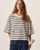 T-shirt marinière coupe boxy coton Oeko-Tex écru et noir