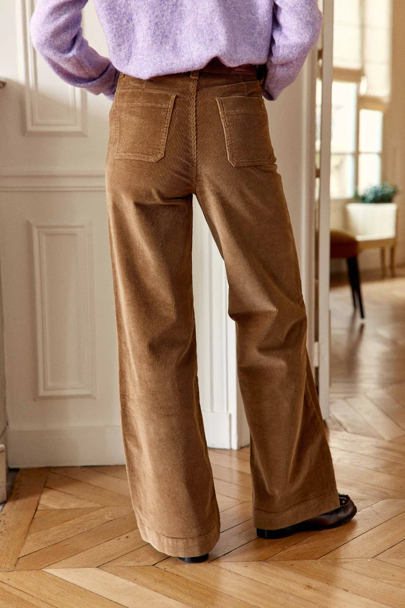 Le pantalon Atlanty revisite le jean large en velours côtelé, avec une taille haute et des poches plaquées.