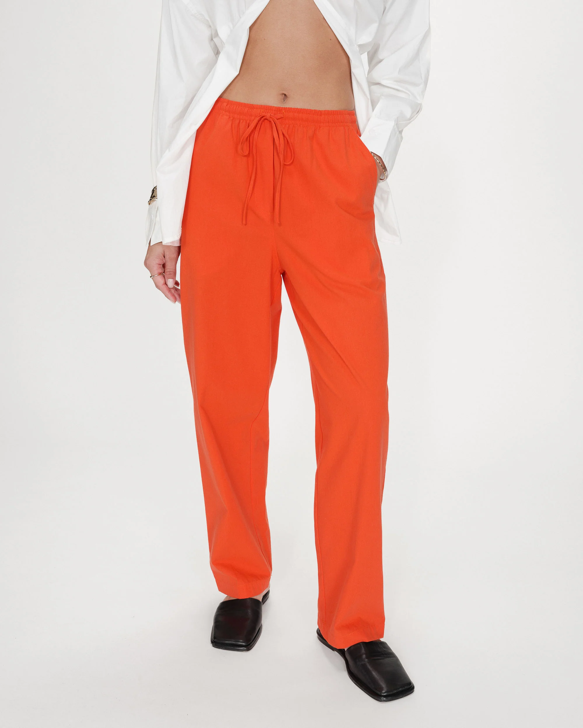 La coupe droite et la taille mi-haute du pantalon en coton RHODE conviennent aux courbes féminines et dessinent une silhouette classique et intemporelle. La taille élastiquée à cordon de serrage offre une allure confortable et décontractée. Le pantalon à taille élastiquée RHODE est confectionné en 100 % coton. Le modèle est doté de poches italiennes sur le devant et de poches plaquées au dos.
