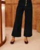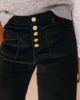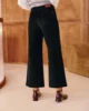 Pantalon large en velours femme, taille haute et coupe 7/8ème, avec boutonnage décoratif et poches plaquées.