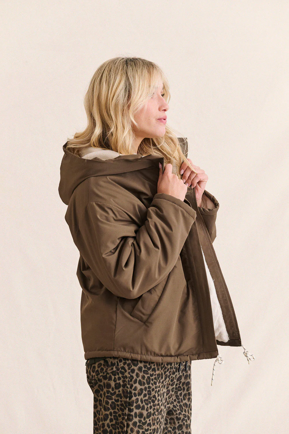 Et puis il y a ce détail qu’on aime tant : une doublure en fausse fourrure crème, ultra douce qu’on a envie de porter à même la peau, jusque dans la capuche et les poches !