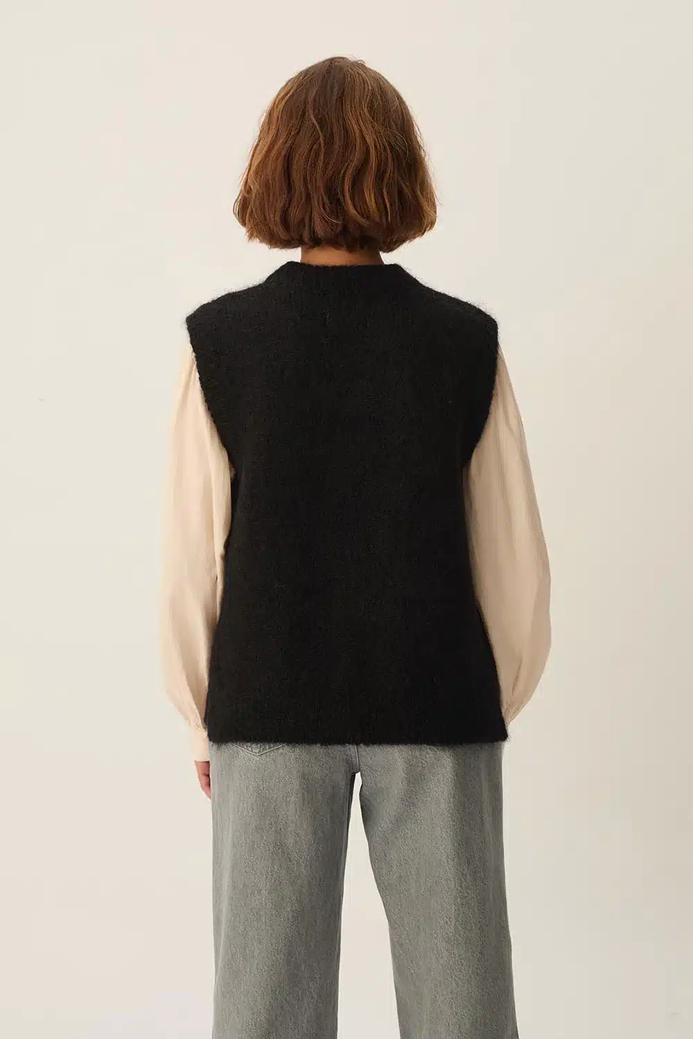 Pull sans manches en Kid Mohair et laine mérinos noir
