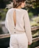 Laure a imaginé cette ouverture dans le dos comme un détail signature, à la fois subtil et audacieux, qui transforme un pull simple en pièce forte.
