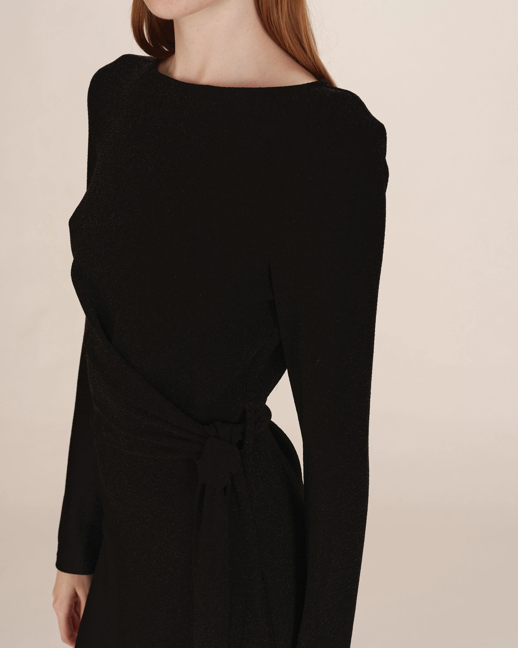 Féminine et élégante, la robe courte TEA s’invite dans le vestiaire festif de la collection. Le jersey lurex habille la pièce pour offrir une silhouette lumineuse. La matière fluide et la coupe ajustée s’associent à un lien à nouér à la taille pour épouser les courbes et apporter du mouvement. La robe en lurex TEA présente un col rond et des manches longues.