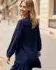 La robe Robbie séduit par son allure fluide et féminine. Sa coupe ample et courte s’accompagne d’une encolure en V, de manches longues et d’un boutonnage délicat à boutons nacrés. Sa découpe froncée au bas de la robe apporte légèreté et raffinement à chaque mouvement.