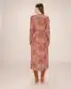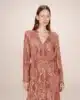 La robe longue SOURCE , à l’esprit bohème vintage, est sublimée par un imprimé aux tonalités chaudes et épicées. L’encolure ronde fendue en V et les manches boutonnées apportent une touche romantique et raffinée. La coupe droite et la ceinture amovible de la robe imprimée SOURCE soulignent la taille et structurent la silhouette. La pièce a des volants au col et aux poignets ainsi que des fentes sur les côtés.