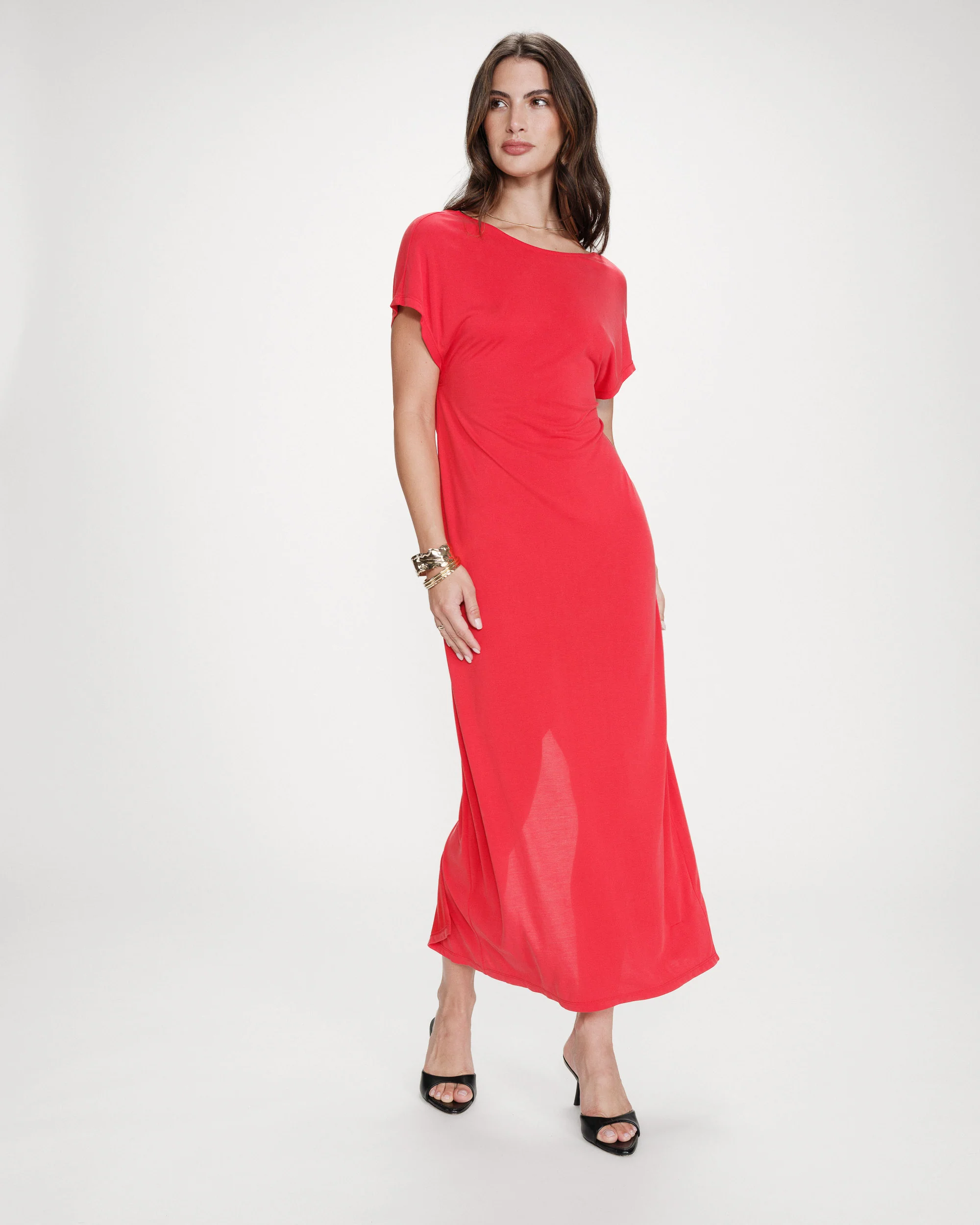 ROBE LONGUE MANCHES COURTES EN MODAL