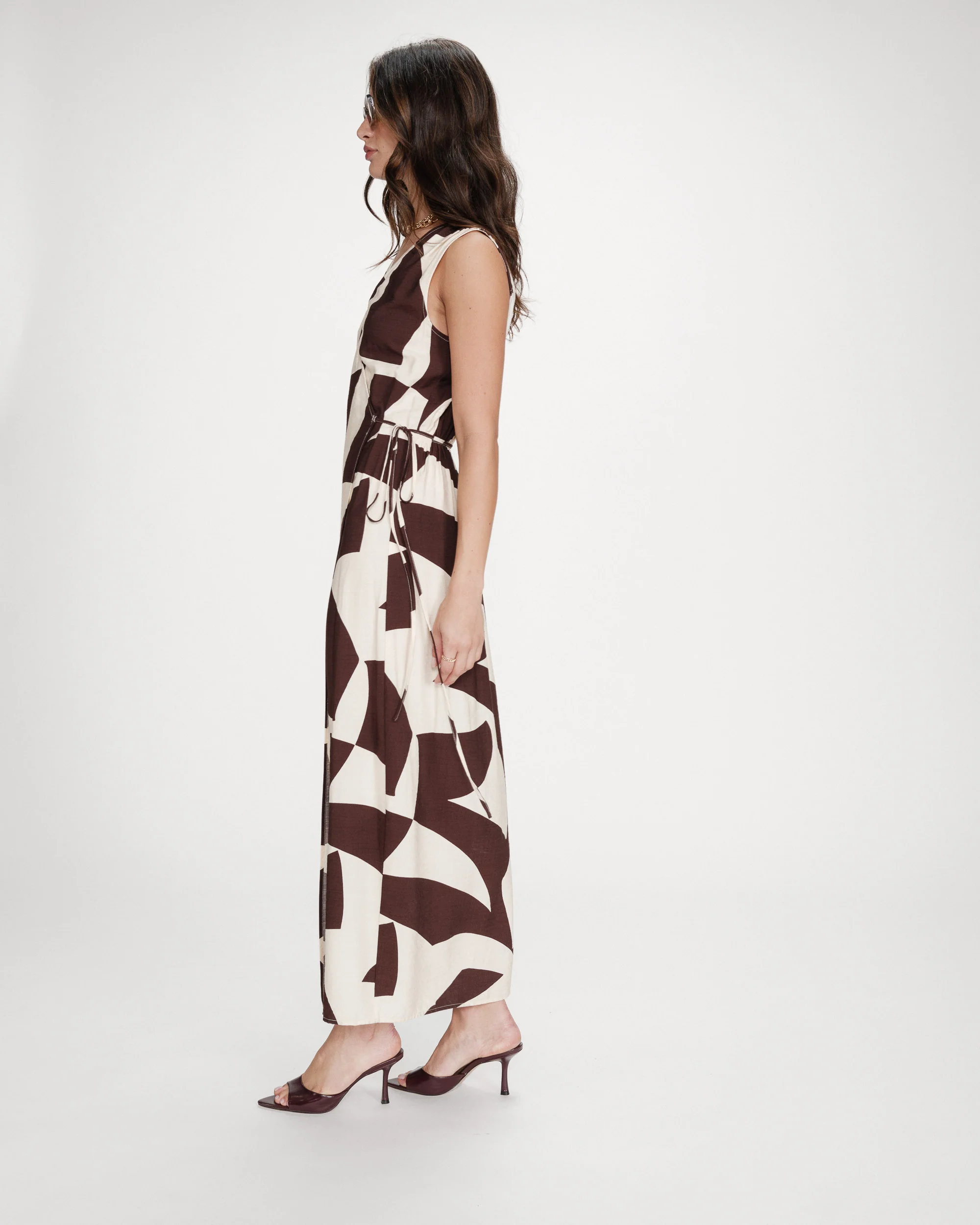 La robe longue VELLINE possède une fermeture portefeuille, un décolleté croisé et une taille ajustée par un lien à nouer, créant une silhouette féminine et structurée. L’imprimé géométrique apporte une allure graphique et affirmée. Avec son tissu fluide et ses manches courtes, la robe imprimée VELLINE s’impose comme une pièce phare de la saison.