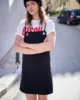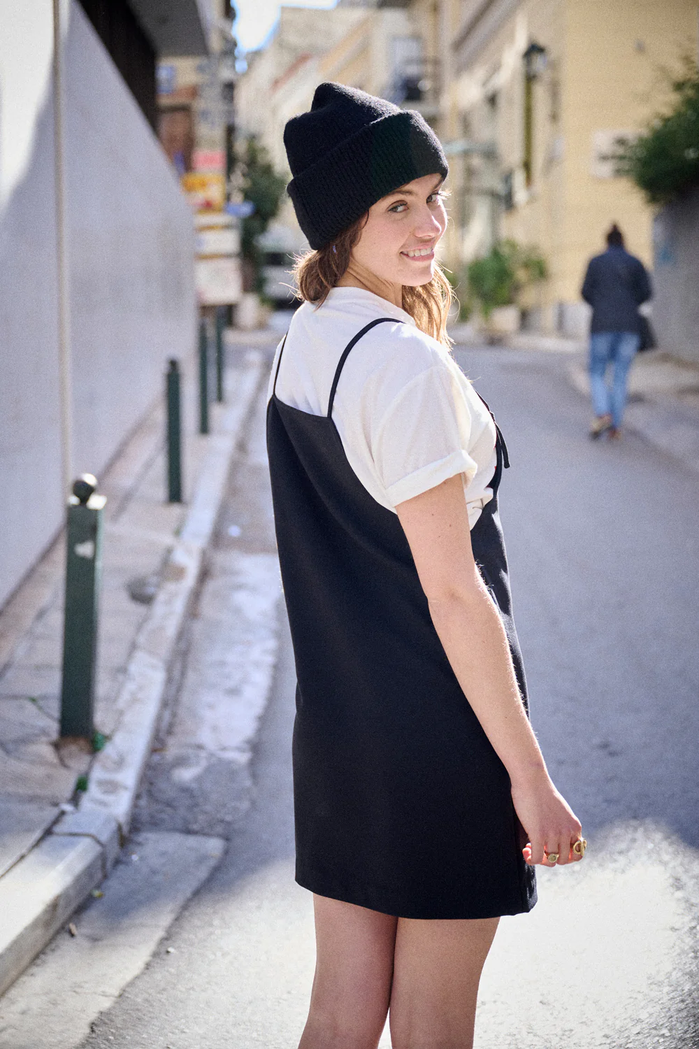 Une robe à bretelles nouées, facile à enfiler, avec des œillets métalliques pour le petit twist cool.
