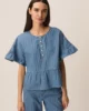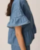 L’iconique toile denim s’invite dans tous nos looks cette saison avec le top en jean Lisette. Rayures fines, emmanchures et base volantées, ce petit haut apportera relief et modernité à vos silhouettes de printemps-été.