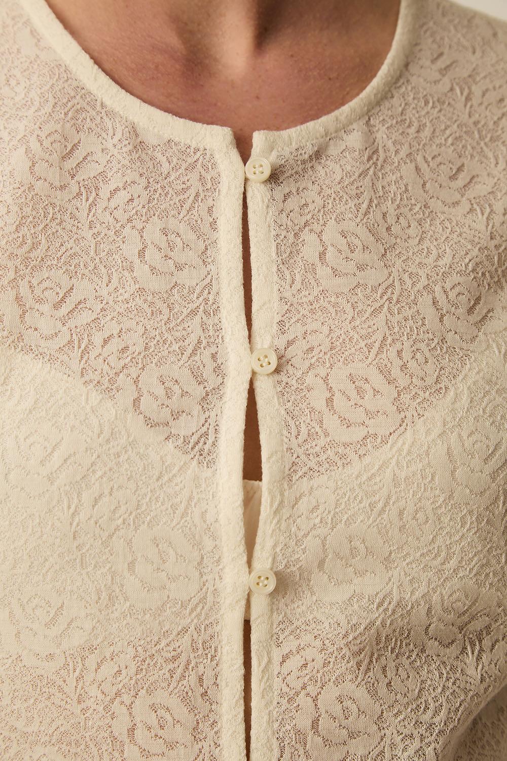 T-shirt dentelle boutonné coton écru