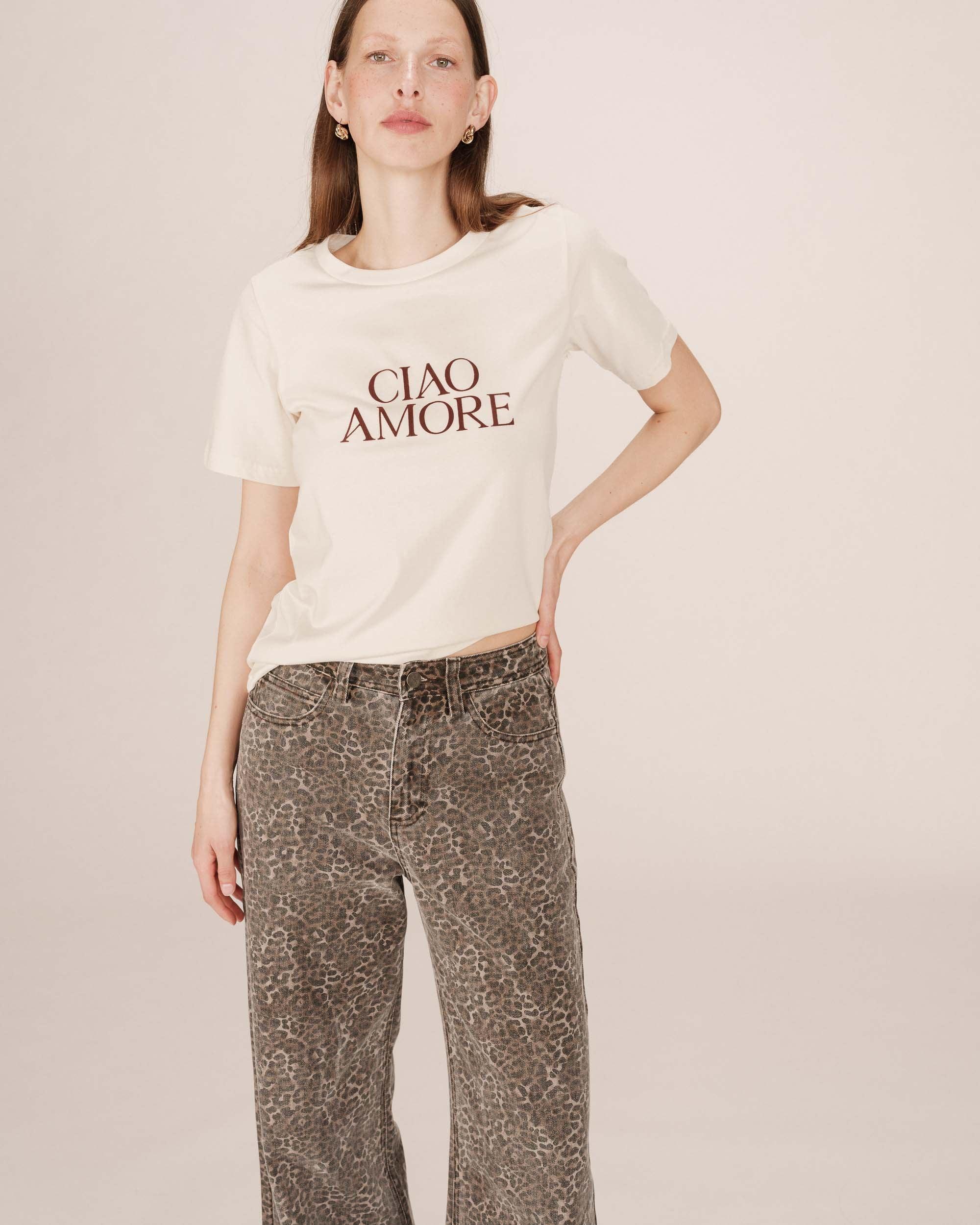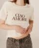 Le t-shirt à manches courtes SOFT , agrémenté du message “CIAO AMORE” imprimé en velours, est un basique de la collection. La coupe droite et le col rond du modèle conviennent à toutes les morphologies. La pièce est confectionnée en 100% coton.