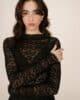 Le t-shirt en dentelle stretch SHADY propose une allure élégante et contemporaine. La coupe ajustée, la transparence et l’encolure haute subliment la silhouette, tandis que les finitions ondulées aux poignets, à l’encolure et à l’ourlet apportent une touche de féminité délicate. Le t-shirt à manches longues SHADY incarne une sensualité discrète et moderne.