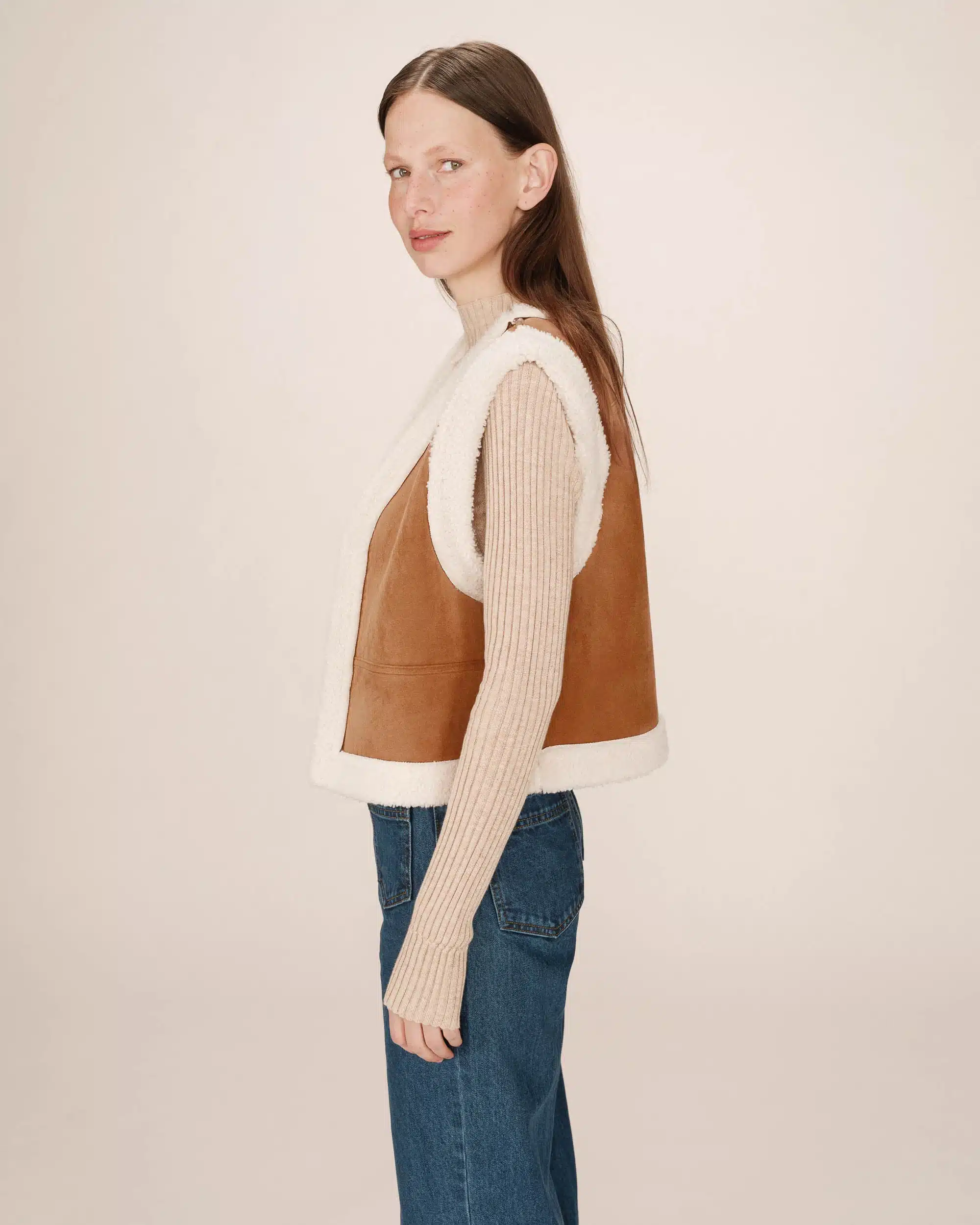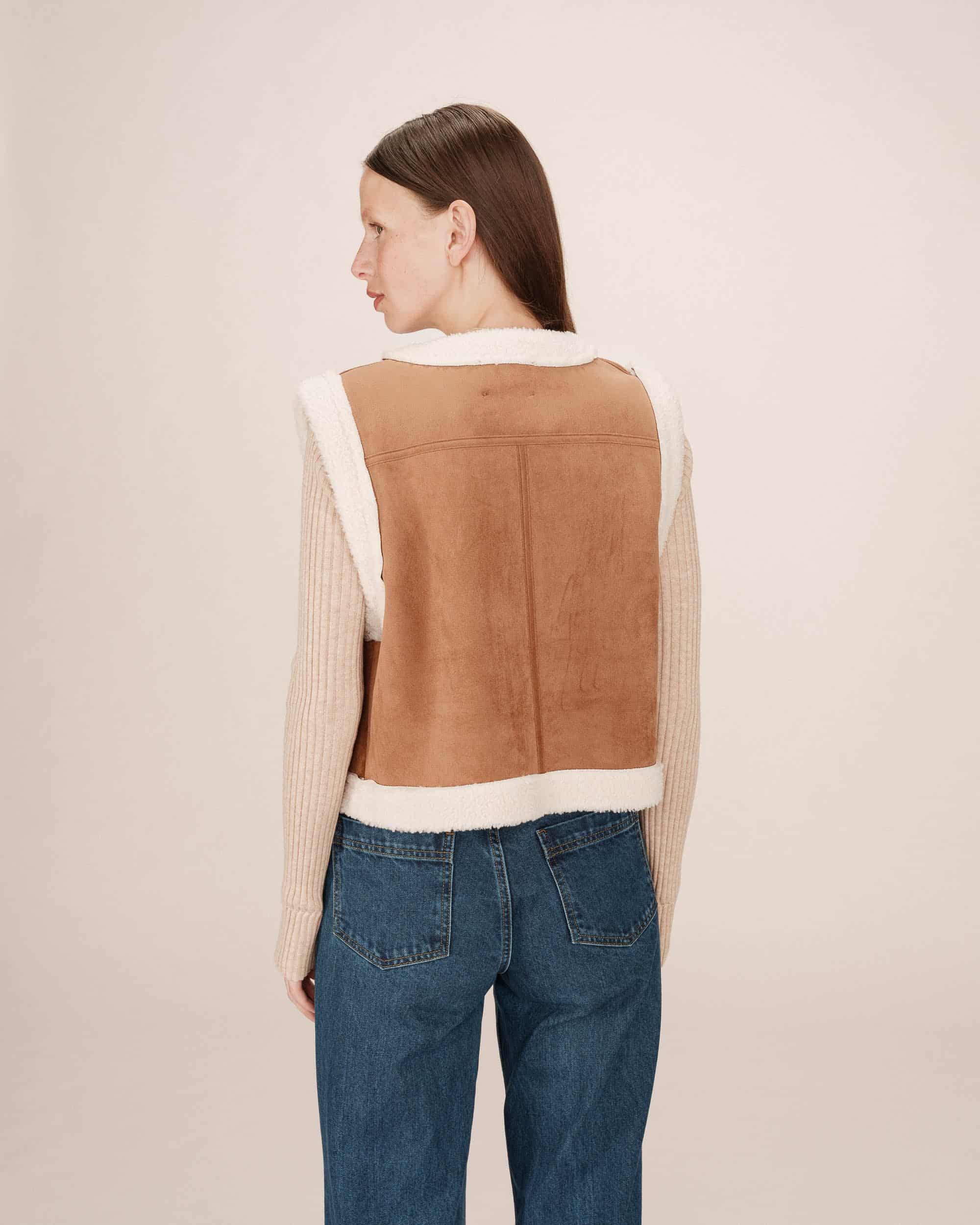 – Finitions en faux shearling aux emmanchures, à l’encolure, sur l’ouverture devant et à l’intérieur