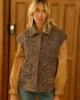 La veste Vaya adopte une coupe large et sans manche, réalisée en tissage tweed pour une allure structurée. Elle se distingue par son col chemise, ses emmanchures tombantes, ses poches plaquées sur le devant et son boutonnage milieu devant avec boutons pressions.