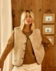 La veste Vinka présente une coupe droite et sans manche, avec un tissage à carreaux élégant et un intérieur effet moutonné. Elle est dotée d’une encolure ronde, d’un boutonnage milieu devant et de boutons en corne pour une finition soignée.